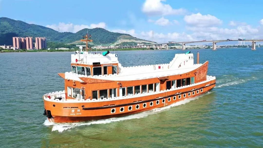 海上看南沙,“横档号”船体造型仿照古战船的样式,在水上航行时能生动还原虎门海战历史场景。二层甲板设有仿古“炮台”模型,可供游客拍照打卡、凭栏远眺。沿途,可领略亚洲最大邮轮母港的宏观壮丽、欣赏历史可追溯至明代的南沙天后宫的金碧辉煌、狮子洋入口的咽喉—上、下横档岛、乘船经过霍英东先生开发南沙的第一个项目—虎门渡口,一览中国内陆原首座桥式汽车轮渡码头旧貌,感受这座曾串联起珠江东西两岸的码头的沧桑变迁。