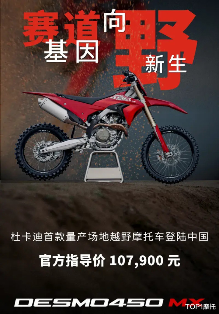 4月13日,杜卡迪中国宣布Desmo450 MX越野摩托车正式上市,售价为107,900元人民币,这个价格在外行看来不便宜,但是目前国内市场上同类别的选择并不多,而且这是一款不能上牌的场地全尺寸越野摩托车,冷门小众车型的价格自然不能以常规眼光去看待。