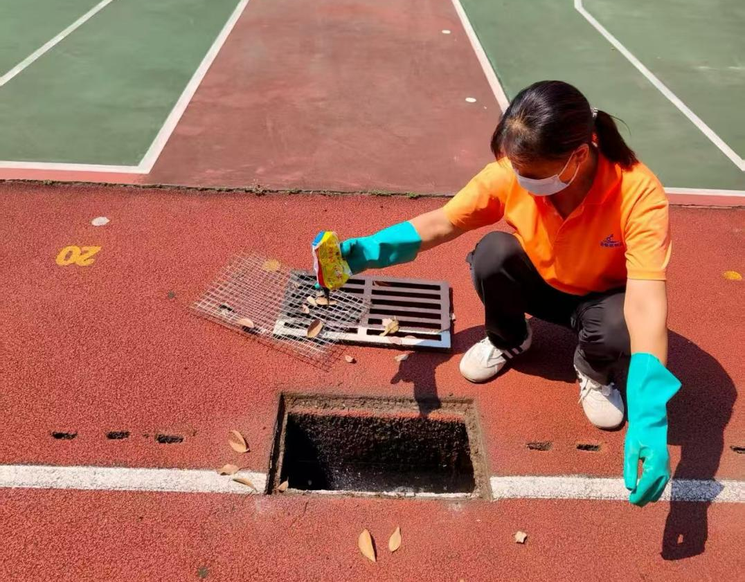 校园环境卫生大整治。各学校组织师生、后勤人员开展全面卫生大扫除,重点清理校园内垃圾收集点、绿化带、排水沟、下水道口等易孳生蚊虫的区域,确保无垃圾堆积、无积水容器。同时,对教室、宿舍、食堂等场所进行彻底清洁,保持环境整洁卫生。
