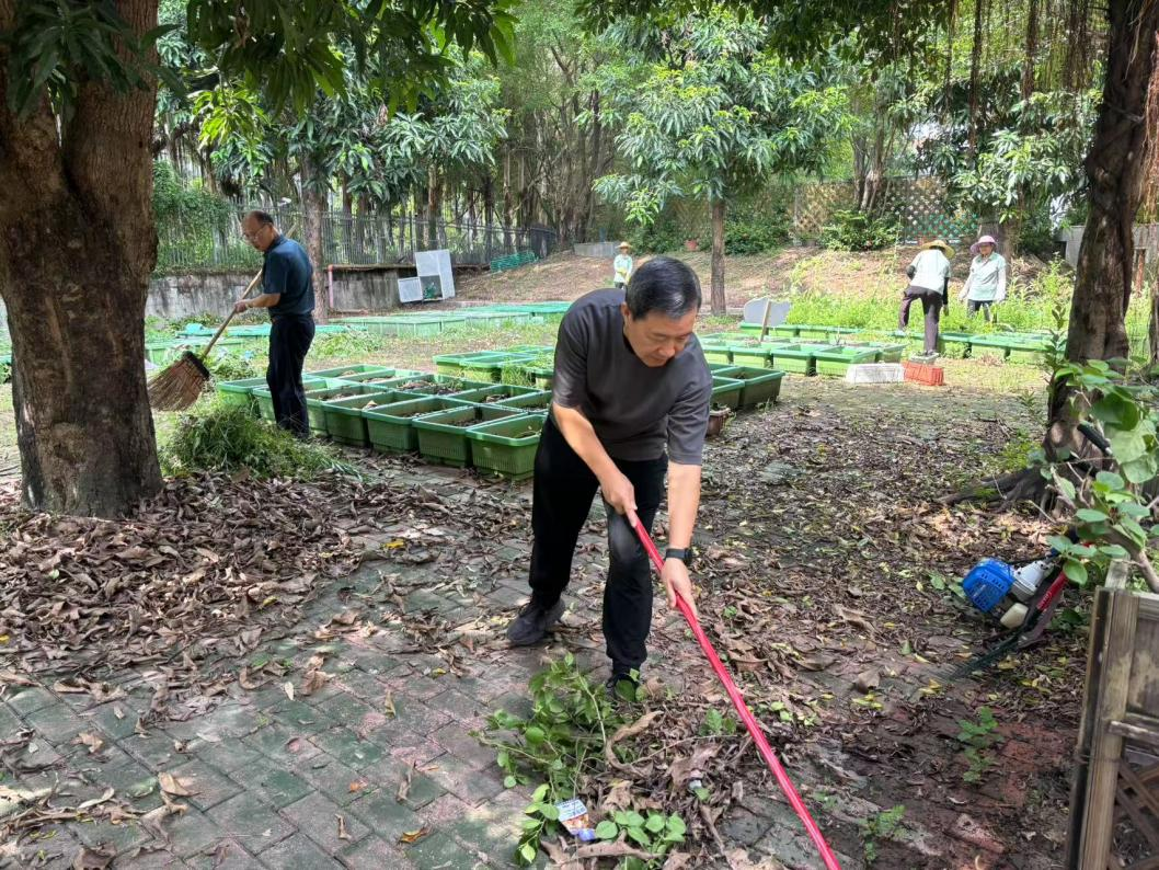 ▲远洋学校组织教职工人员开展校园卫生整治行动