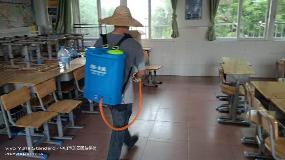 专业灭蚊消杀全覆盖。联合专业消杀团队,对校园内各类下水道口、地下车库、楼梯间、杂物间等区域进行喷药消杀,重点杀灭成蚊。同时,配备环保型灭蚊设备,使用电热蚊香液、气雾杀虫剂等工具,引入熏艾条等辅助驱蚊方式,科学构建“化学消杀+物理防护+生态驱避”的综合防控体系,切实降低蚊虫密度,保障师生健康安全。